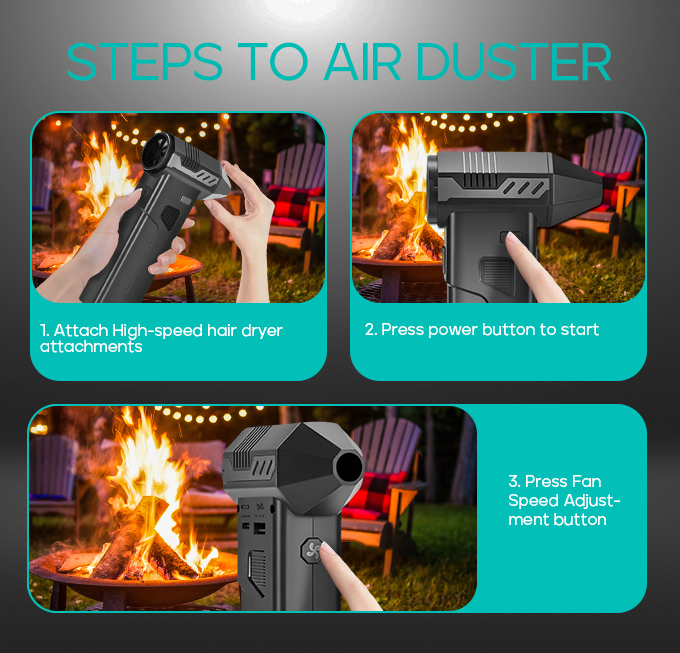 Powerful high-speed suction and air blower for cleaning tight spaces and removing debris effortlessly.