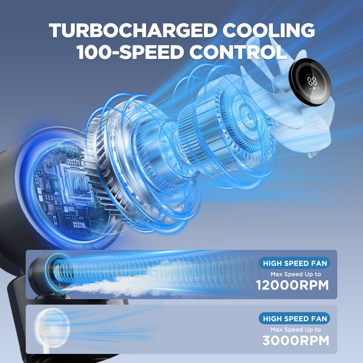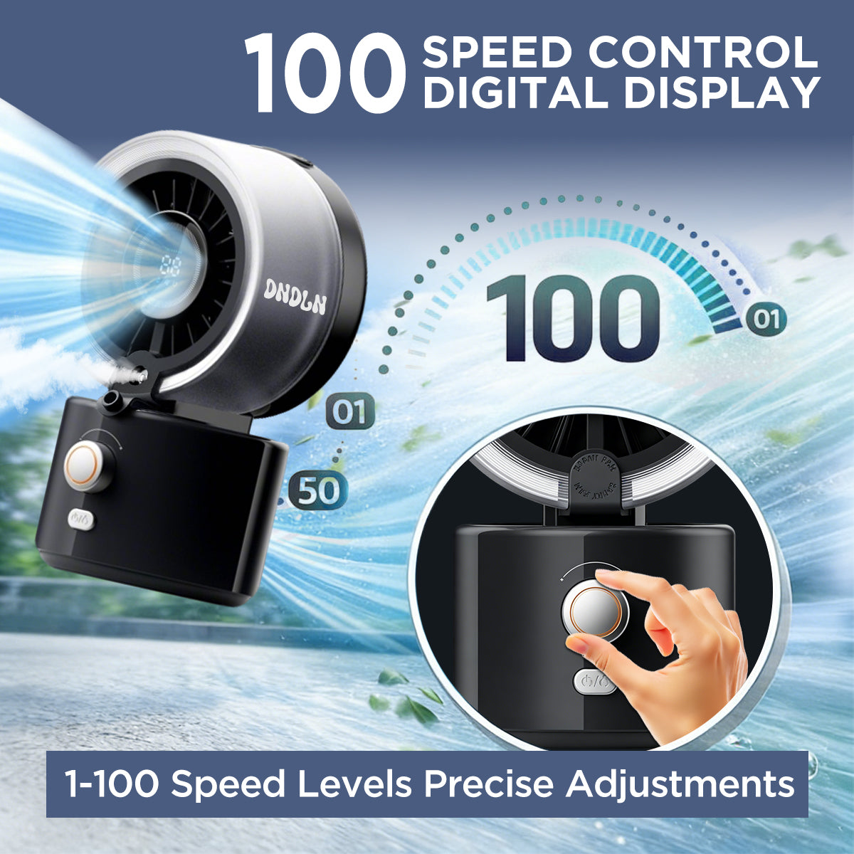 100-Speed Adjustable Airflow – Precise airflow control from gentle breeze to strong cooling, perfect for personal comfort in any setting